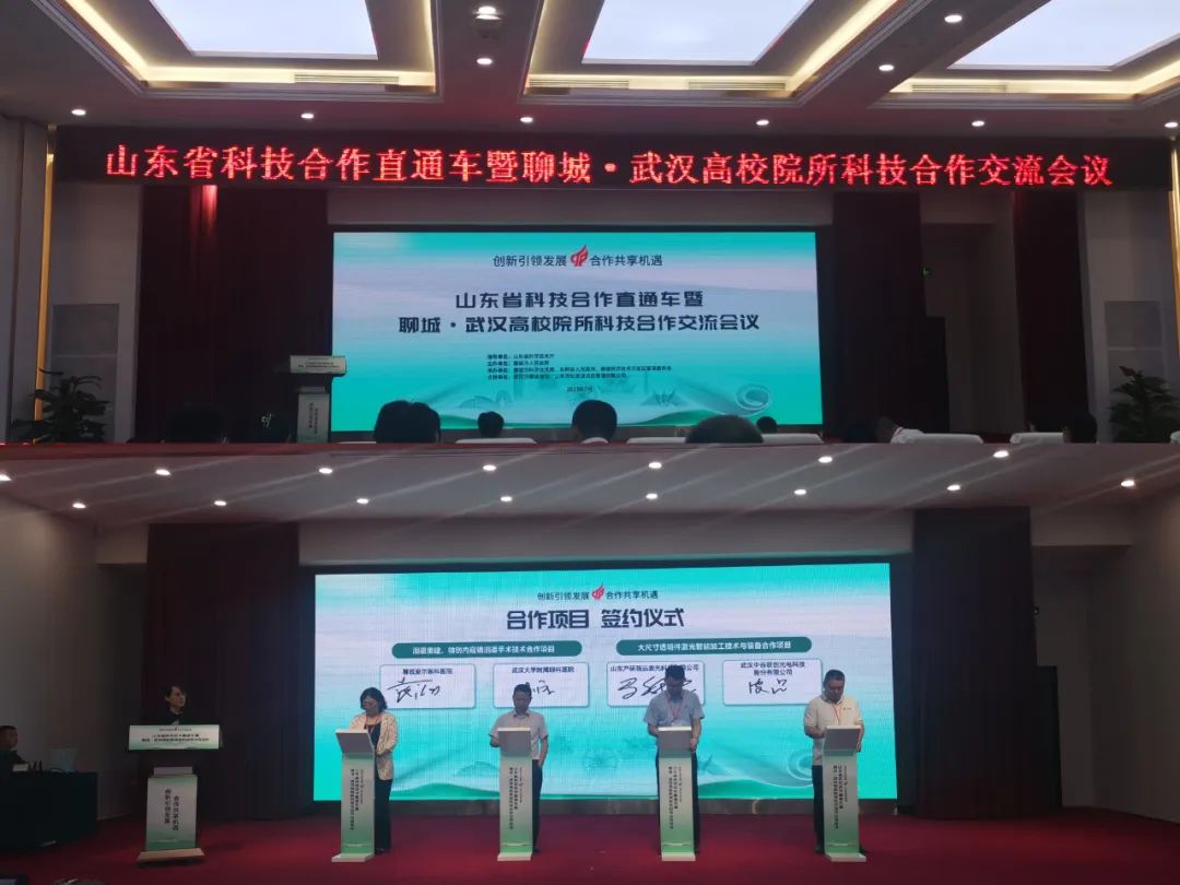 7月7日上午,由聊城市科技局組織的山東省科技合作直通車(chē)暨聊城·武漢高校院所科技合作交流會(huì)議在武漢舉行。省科技廳,聊城市科技局,武漢高校代表,各區(qū)縣、聊城產(chǎn)研院、大學(xué)科技園及有關(guān)企業(yè)代表共計(jì)70余人參加活動(dòng)。會(huì)上舉行了“山東(聊城)駐武漢科技合作聯(lián)絡(luò)站”揭牌儀式及6個(gè)科技合作項(xiàng)目的簽約儀式,其中聊城產(chǎn)研院孵化企業(yè)強(qiáng)遠(yuǎn)激光與武漢中谷聯(lián)創(chuàng)成功簽約;隨后,各區(qū)縣企業(yè)有關(guān)技術(shù)需求與武漢高校專(zhuān)家科技成果精準(zhǔn)對(duì)接洽談,持續(xù)推進(jìn)深層次產(chǎn)學(xué)研合作。